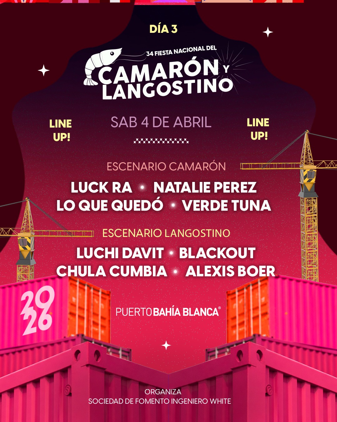 El Puerto de Bahía Blanca y la Sociedad de Fomento de Ingeniero White difundieron en las últimas horas el cronograma de recitales de cada día y las recomendaciones que tenés que tener en cuenta para pasar un fin de semana con amigos y en familia.